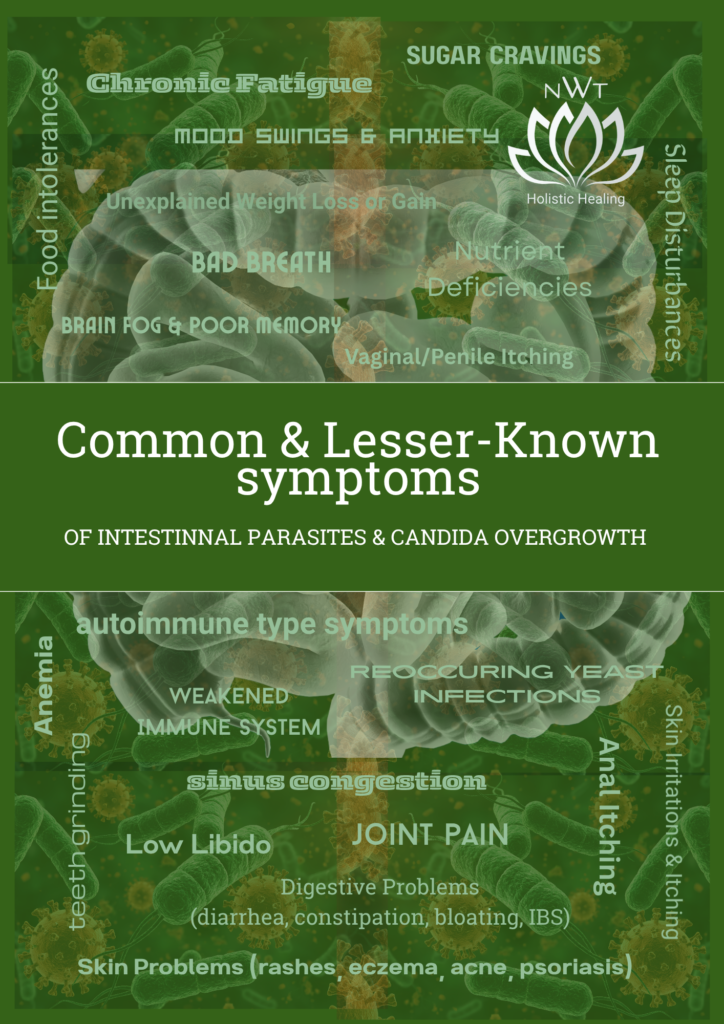 COMMON & LESSER KNOWN SYMPTOMS OF INTESTINAL PARASITES AND CANDIDA OVERGROWTH